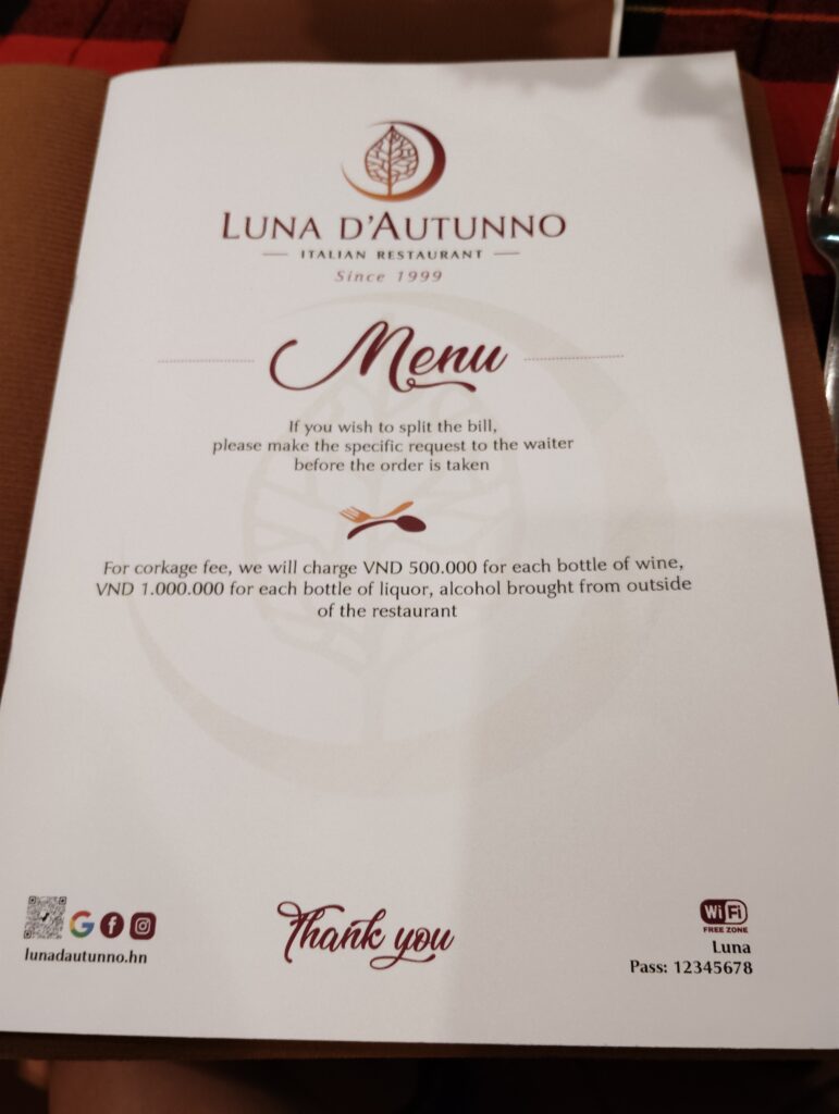 ハノイにある「Luna d’Autunno」へ訪問したのでレビュー!