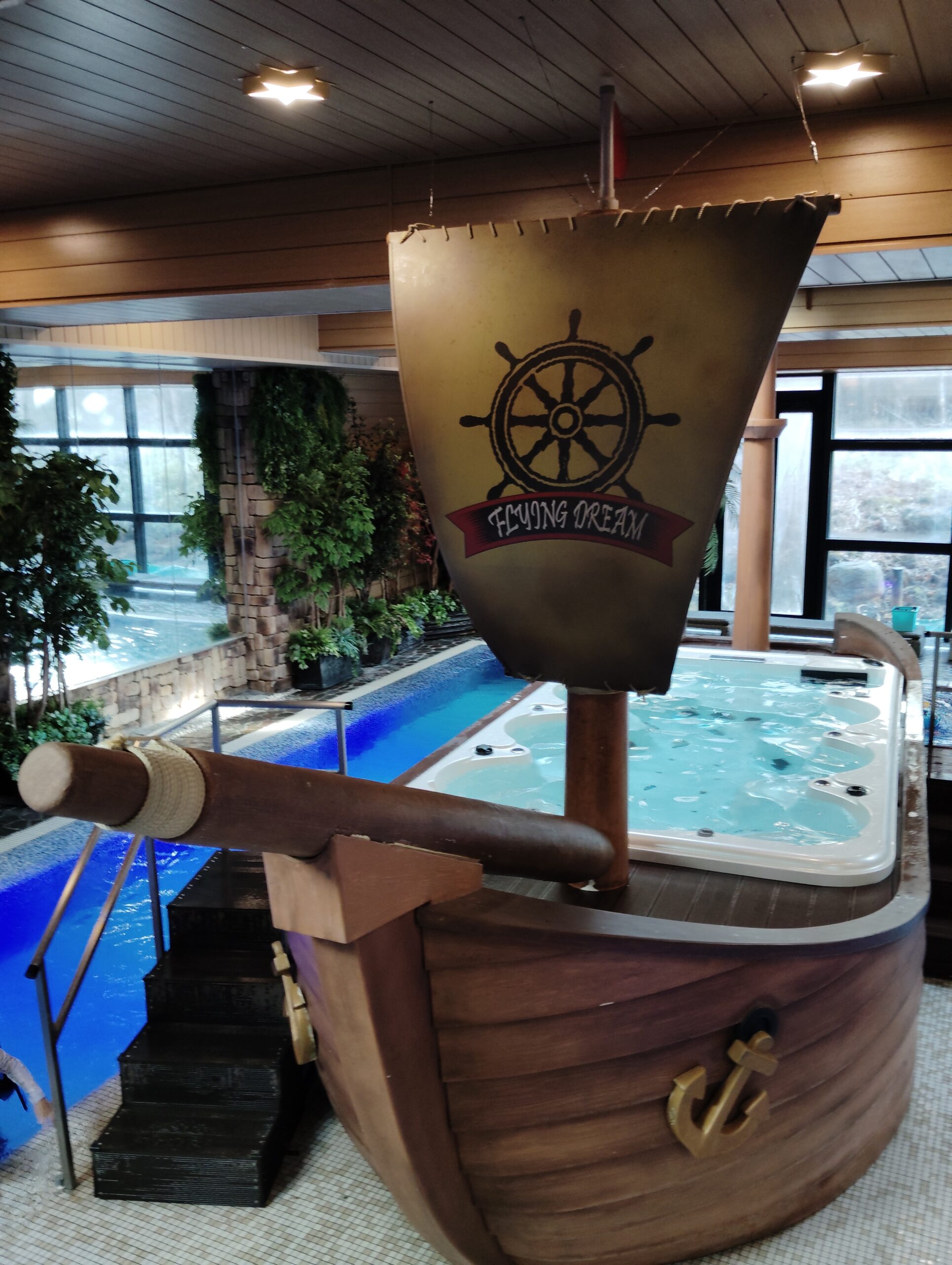 浅めの子供用のプール、海賊船の中にジャグジー🛟🛟🛟